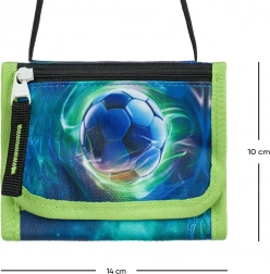 Nyakba akasztható pénztárca focis mintával tökéletes mindennapi használatra és különleges alkalmakra is. Erős és tartós anyagból készült, amely biztosítja pénztárcájának hosszú élettartamát. Praktikus nyakba akasztható zsinórjának köszönhetően értékei mindig kéznél és biztonságban lesznek.