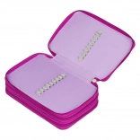 Fejleszd iskolai felszerelésed egy háromszintes tolltartóval, amely elegendő helyet biztosít az összes ceruzának, filctollnak és más iskolai eszközöknek. A tolltartó rendelkezik gumiszalagokkal, amelyek alkalmazkodnak még a vastagabb íróeszközökhöz is, lehetővé téve a szervezettséget és az egyszerű hozzáférhetőséget.