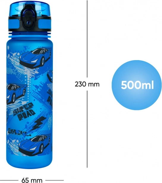 A palack speciálisan gyerekek számára tervezett, versenyautós mintával, amely minden autókedvelő gyerek örömére szolgál.