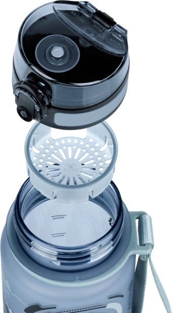 Praktikus zárható fedéllel és szűrővel van felszerelve, ami különféle italok, beleértve a gyümölcstartalmú üdítők vagy teák használatát is lehetővé teszi. A csatolt hevederrel könnyű a palack hordozása. A palack aktív szerepet játszik a környezet védelmében a műanyag hulladék csökkentésével.