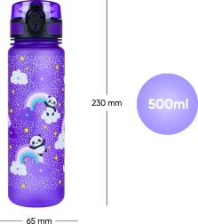 Az elegáns tritán palack, 500 ml kapacitással, lenyűgöző mind megjelenésében, mind funkcionalitásában. Tanúsított tritánból készült, nem bocsát ki kellemetlen szagokat és nem tartalmaz egészségre káros anyagokat, mint a BPA, PVC és ftalátok. A palack része egy szűrő is, így használhatod gyümölcsökkel teli limonádékhoz vagy teákhoz, miközben az anyag forró italokra is alkalmas. Az elegáns panda és szivárvány minta nagyszerű kiegészítővé teszi a gyermekek számára.