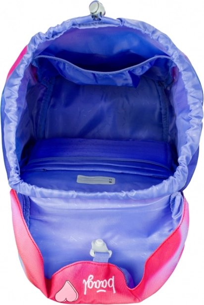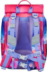 A hátizsák mell- és derékpántokkal van felszerelve, amelyek egyenletes terheléselosztást és a nehezebb tartalom tehermentesítését biztosítják. Praktikus elrendezése egykamrás és dokumentumtartóval jobb szervezést tesz lehetővé, míg az első cipzáras zseb védi az iskolai harapni valót. A közlekedésben a fényvisszaverő elemek biztosítják a biztonságot.