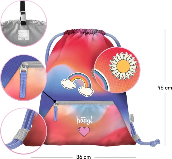 A BAAGL Airy Duha iskolai szett magában foglalja a stílusos és ultrakönnyű hátizsákot, amely alkalmas a kisiskolások számára az első osztálytól kezdve. A hátizsák ergonomikusan kialakított hátsó résszel büszkélkedhet AIRFLOW ERGO RENDSZERREL a maximális légáteresztés érdekében. Vállpántjai teljesen állíthatóak, biztosítva az egyéni testreszabást minden alakhoz.