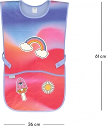 A mosható felület megóvja a ruhát festés és főzés közben, használat után pedig egyszerűen letörölhető. Ideális mindennapi segítőtárs iskolába és otthonra.
