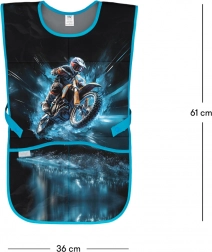A dinamikus motoros minta alkotásra ösztönzi a gyerekeket, és egyedi megjelenést kölcsönöz a köténynek, amelyet a kis versenyzők imádni fognak.