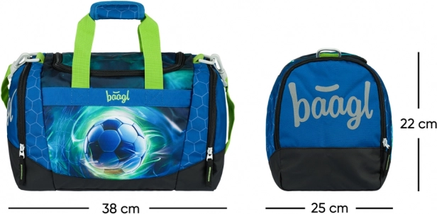 A BAAGL Gyerek sporttáska Futball-labda remek választás a kis sportolóknak. Könnyű kialakítása kényelmes hordást biztosít, míg a széles fedél megkönnyíti a hozzáférést a főrekeszhez. A külön cipőzseb elválasztja a cipőt a ruháktól, az apróságokat pedig a kis zsebbe teheti.