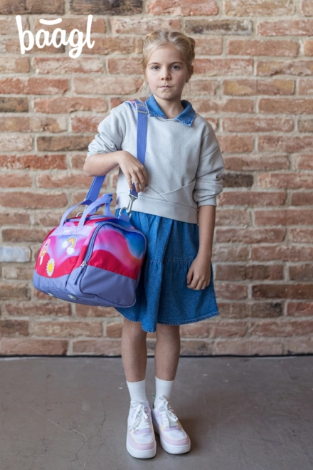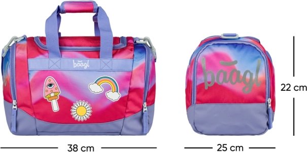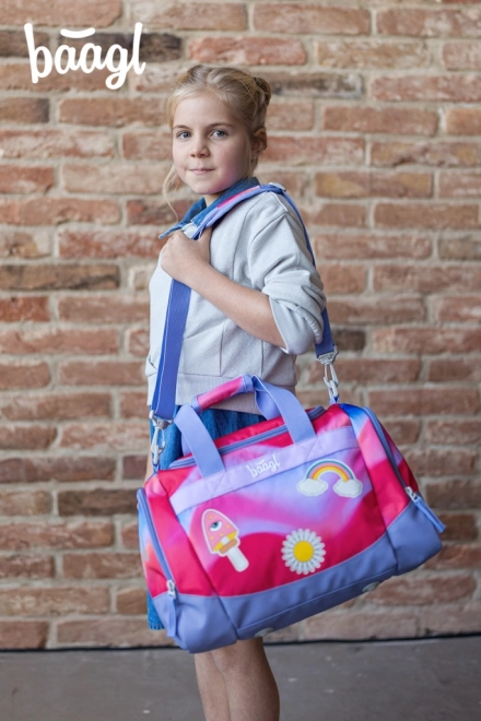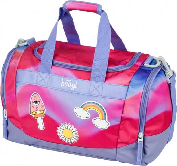 Könnyű és stílusos BAAGL gyerek sporttáska szivárvány mintával, ideális szakkörökre, tornára és kézipoggyásznak. Tágas főrekeszt kínál széles fedéllel, külön cipőzsebet, levehető, állítható pántot és megerősített, vízálló aljat. A megbízható YKK cipzárak gondoskodnak a sima nyitásról, a fényvisszaverő elemek pedig a biztonságról.