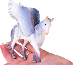 A figura tartós műanyagból készül, és kézzel festett, ami minden darabnak egyedi megjelenést kölcsönöz. A fehér és kék finom kombinációja ezüstös akcentusokkal varázslatos hangulatot ad, így kiváló ajándék az állatokat és meséket kedvelő gyerekeknek.