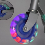 Ez a gyerekroller a könnyű súlyt, az összecsukható kialakítást és a biztonságos megoldásokat ötvözi. A világító LED kerekek növelik a láthatóságot és a vonzerőt menet közben, elemek nélkül – a diódák a kerekek forgása közben termelt energiával működnek.