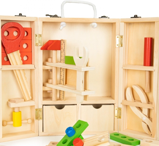 ECOTOYS Gyerek Műhely Szerszámkészlet ideális megoldás kis mesterek számára. Tartalmaz 10 különböző szerszámot, amelyek végtelen szórakozást nyújtanak és fejlesztik a gyerekek kreativitását és képzelőerejét, mindezt egy biztonságos, zárható ládában tárolva.