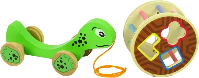 Fahúzós teknős formaválogatóval okos játék a legkisebbeknek, amely ötvözi a mozgást, a finommotorika fejlesztését és az alakok tanulását. A színes, forgó dob formaválogatóval és 3 kockával fejleszti a logikát és a kéz–szem koordinációt, miközben a zsinór és a kerekek aktív játékra ösztönöznek. Minőségi fából készült, biztonságos festéssel.