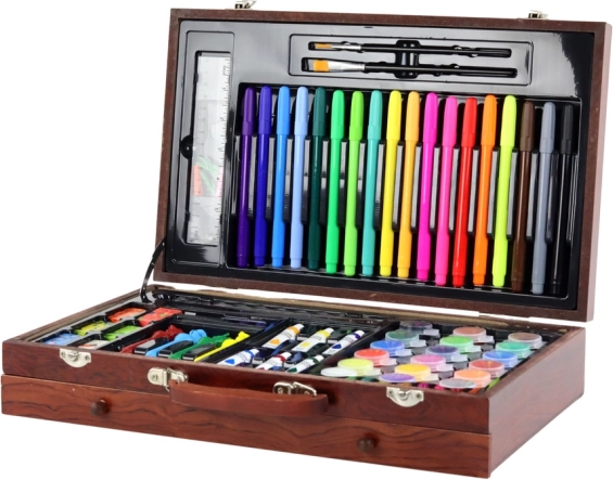 Művészeti készlet fa kofferben 123 darabos