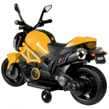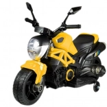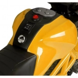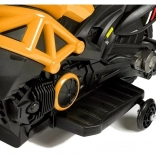 A kompakt, akkumulátoros GTM1188 gyermekmotor sárga színben stabil haladást, élethű megjelenést és egyszerű kezelést kínál. Masszív vázzal, integrált oldalsó stabilizáló kerekekkel, hátramenettel és üres fokozattal, valamint elöl színváltós LED fényszóróval rendelkezik. A csendes 35 W-os motor a hátsó kereket hajtja, a motor akár 3 km/h sebességgel halad. Ideális 3 éves kortól 25 kg teherbírásig, CE tanúsítvánnyal a biztonságos játékért.