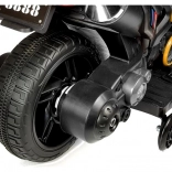 A kezelés intuitív: a „tankon” található a főkapcsoló és a menetirány-váltó (előre/hátra/üres). Az első LED fényszóró több színnel minden útnak stílust és jobb láthatóságot kölcsönöz. A valósághű részletek, mint a visszapillantó tükrök, a dupla kipufogó és a „rendszámtábla” helye egyedi matricával, kiemelik az igazi motoros megjelenést.