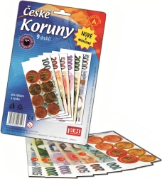 A szórakoztató játékpénz készlet 6 fajta színes cseh bankjegyet és 10, 20 és 50 KČ értékű érméket tartalmaz. Összesen 149.340 KČ-t tartalmaz, ami kétszer annyi, mint a versenytárs termékek esetében. Ez a készlet ideális azoknak a gyermekeknek, akik meg akarják tanulni a pénz használatát, és alkalmas oktatási segédeszközként is az iskolai oktatáshoz.