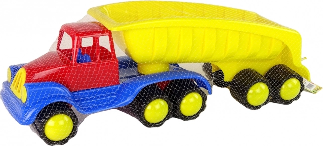 A nagy sárga teherautó pótkocsival olyan játék, amely fejleszti a gyermekek kreativitását és szórakozását. Hosszának és forgatható pótkocsijának köszönhetően széles körű játékszcenáriókat tesz lehetővé.