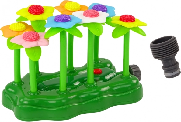 Csatlakoztatva a kerti tömlőhöz és a víz indításával a nyomás hatására a virágokból víz spriccel, ami nagyszerű módja annak, hogy a gyerekek aktívan töltsenek időt kint.
