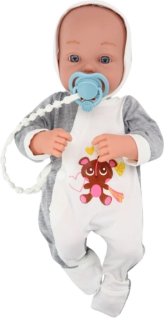A készlethez tartozik egy kék cumi fonott zsinóron és egy puha takaró a még nagyobb öröm érdekében gondozás közben. A babával való játék kiterjeszti a gyermek fantáziáját és tanítja őket, hogyan gondoskodjanak egy babáról, ezzel ösztönözve szociális fejlődésüket.