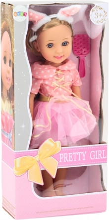 Elegáns rózsaszín ruha, fehér pöttyökkel és arany kiegészítőkkel díszítve teszi ezt a babát tökéletes választássá bármilyen alkalomra. A hozzá tartozó rózsaszín cipők tökéletesen illenek a ruhához.