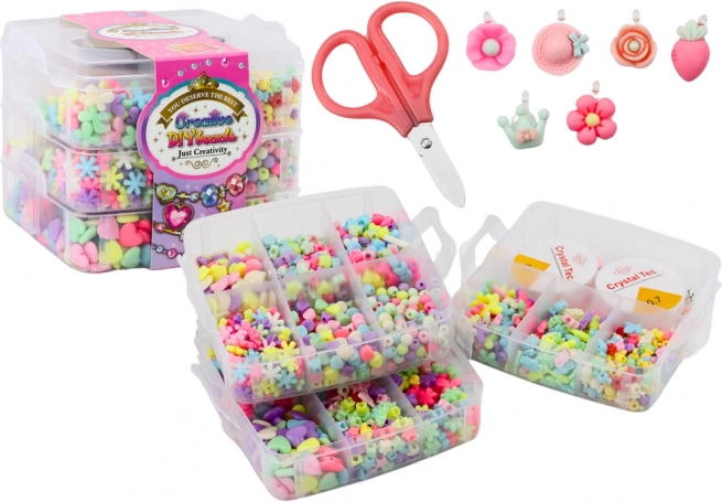 Ékszermedál gyöngykészlet barkács tokban, zsinórral, 1620 db