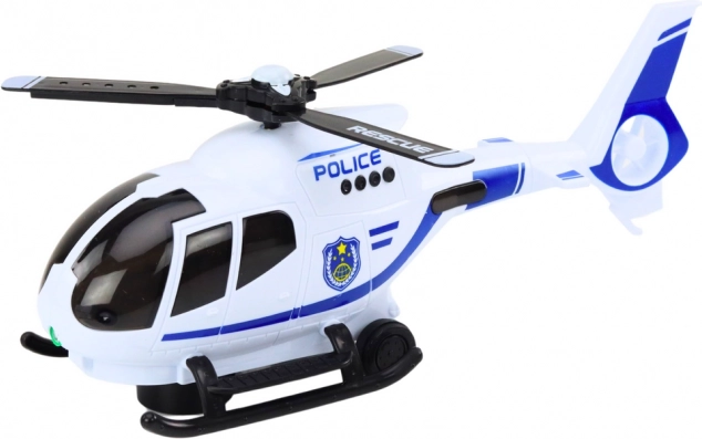 Ez a műanyag rendőrségi helikopter vonzó színekben ideális a kis akció- és mentőküldetés-rajongóknak. A forgó és világító rotor, a zenei és hanghatások, valamint az okos mechanizmus, amely ütközéskor irányt vált, hosszú órákon át tartó szórakozást kínál és ösztönzi a kreatív játékot.