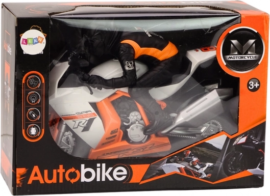 A fehér motoros motor egy dinamikus játék, tartós anyagokból készítve, amelyek biztosítják az ellenálló képességet és a valósághű megjelenést. Minden darab gondosan, nagy odafigyeléssel készül a részletekre, ami hitelességet kölcsönöz a motornak, így szinte valódinak tűnik. A fehér szín narancssárga elemekkel figyelemfelkeltő, modern és energikus karaktert ad. A motoron gondosan kidolgozott motoros figura található, amely tovább fokozza a valósághű hatást.