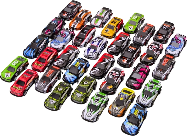 Ez a gazdag kollekció 32 egyedi kisautót tartalmaz élénk színekben. A szabadonfutó meghajtásnak köszönhetően az autók simán gurulnak bármilyen sík felületen, és ösztönzik a versenyeket, valamint a kreatív játékszcenáriókat. A készlet ideális otthoni pályákhoz, rögtönzött ralira és csoportos játékra.