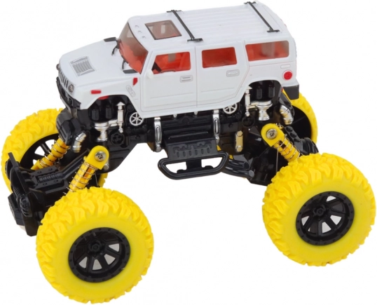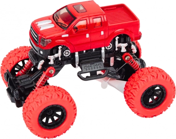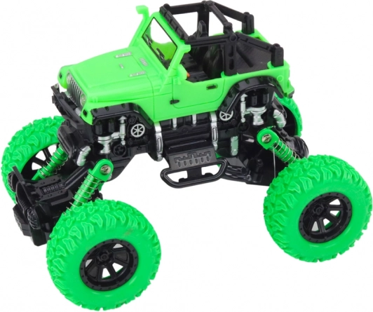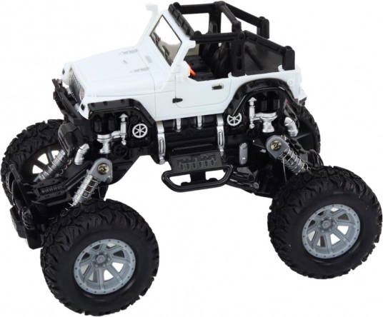 A 4x4 terepjáró kifejezetten megterhelő körülmények közötti, akciódús játékra készült. A magas, rugózott felfüggesztés és a nagy, mintázott kerekek lehetővé teszik az akadályok, kövecskék és egyenetlen felület könnyű leküzdését. Az élethű részletek, mint a lökhárítók és oldalsó elemek, valódi off-road jármű kinézetét kölcsönzik a játéknak.