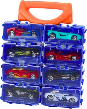 Tárold és szállítsd a kisautókat biztonságosan és kényelmesen. Minden rekesz a helyén tartja az autót – ideális otthonra és útra egyaránt.