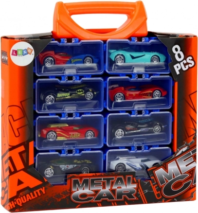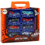 Fedezd fel az utazás közbeni szórakozást a praktikus bőröndben tárolt 8 darab fém kisautó készlettel. Minden autó saját stílussal és színekkel rendelkezik, a rekeszekkel ellátott bőrönd rendet és könnyű hordozhatóságot biztosít. Ideális 3 éves kortól az autók kis rajongóinak, CE tanúsítvánnyal és EN71 szabvánnyal.