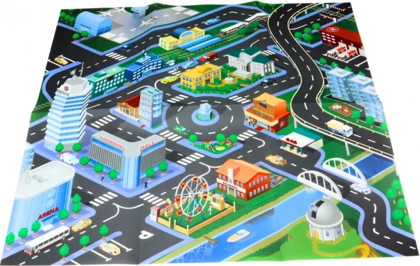 A sokféle jármű mellett a készlet egy nagy várostérképet is tartalmaz, kijelölt utakkal, épületekkel és parkokkal. Ez a játéktér ideális a gyermeki fantázia fejlesztésére, saját történetek és kalandok megalkotására. A praktikus bőröndnek köszönhetően az egész szettet könnyű magaddal vinni utazásokra, piknikre vagy barátokhoz.