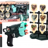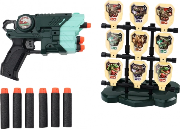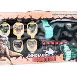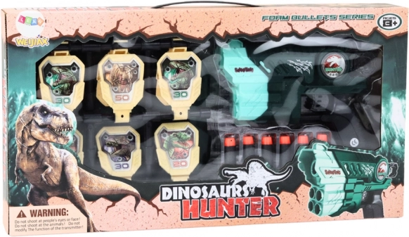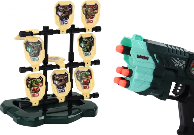 Dinoszaurusz motívumos lövészszett gyerekeknek, amely egyedülálló játékélményt nyújt, ötvözve a szórakozást és a készségfejlesztést. A szett könnyű, ergonomikus pisztolyt tartalmaz, amelyet a kisebb kezek is könnyen kezelhetnek.
