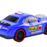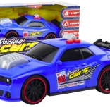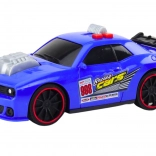 Az autó két gombbal van ellátva – az egyik vidám zenét indít, a másik előre mozgatja az autót. A hajtásmechanizmus biztosítja, hogy az autó gyorsan és dinamikusan mozogjon. Ez a dizájn és a funkcionalitás kombinációja kiválóvá teszi az autót versenyjátékokhoz és üldözőhöz.