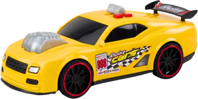 Ez a sárga versenyautó nemcsak csodálatosan néz ki fényhatásaival, de autentikus hangeffektekkel is rendelkezik, amelyek fokozzák a játékélményt. Mozgó mechanikájának köszönhetően az autó dinamikus játékot kínál, ami ideális üldözésekhez és versenyekhez.