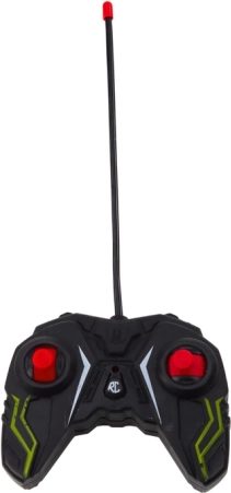 Egyszerű vezérlő hosszú antennával és pontos reakciókkal teljes körű irányítást tesz lehetővé a kisautó felett.