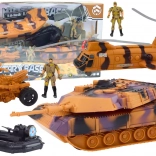 - Tank mozgatható toronnyal – 33 cm hosszú tank álcázó mintával mozgatható toronnyal és fényhatásokkal.