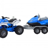 Fedezd fel az akciós játékkészletet quaddal, utánfutóval és vízi robogóval 3 éves kortól. A valósághű kidolgozásnak, a funkcionális utánfutónak és a masszív kerekeknek köszönhetően kreatív kalandokat nyújt szárazföldi és vízi jelenetekben egyaránt. Remek ajándék, különös hangsúllyal a biztonságra és a tartós kivitelre.