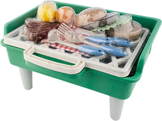 Gyermek grill készlet ideális a kis főzésrajongóknak. Ez a készlet tartalmaz széles választékú valósághű műanyag élelmiszereket és kiegészítőket, amelyek ösztönzik a kreativitást és a főzés utánozását. A készlet gondosan lett megtervezve a biztonság és az egyszerű kezelhetőség figyelembevételével, lehetővé téve a gyerekeknek az egyszerű játékot és motorikus képességeik fejlesztését.