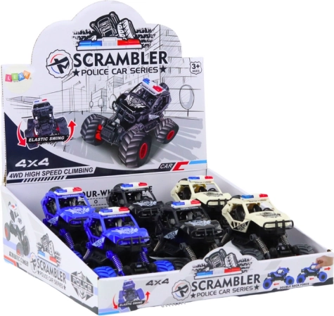 A kisautó valósághű kialakítása olyan részleteket tartalmaz, mint a sziréna, fények és rendőrségi jelölések. Speciális rugóinak köszönhetően látványos ugrásokat tesz lehetővé, így gyermeke akadályokat tud átugrani és akrobatikázni tud.