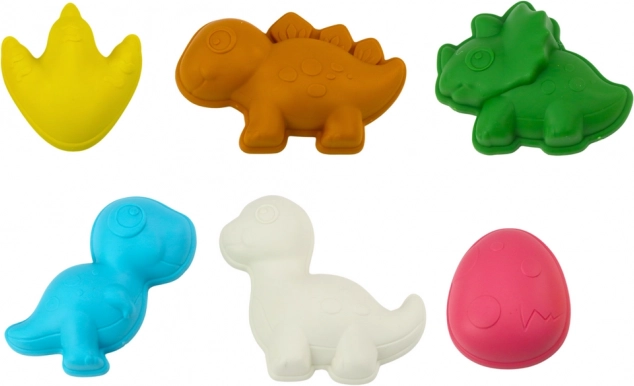 Színes formák dinoszauruszok, tojások és lábnyomok alakjában, amelyek változatos lenyomatokat és egyedi homokalkotásokat garantálnak.