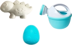 A locsolókanna megkönnyíti az öntözést és a nedves homok formázását, míg a tematikus dínó kiegészítők támogatják a fantáziát és a szerepjátékot a strandon és a kertben is.