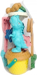 Ideális, dinoszaurusz mintás gyerek homokozó készlet, amely tartalmaz homokmalmot, vödröt, formákat, lapátot és gereblyét. Tartós anyagok és biztonságos kivitel gondoskodnak a remek szórakozásról a strandon és a homokozóban, támogatják a kreativitást és a finommotorikát.