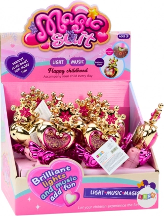 A pálca nemcsak gyönyörű látványt nyújt, hanem lenyűgöző, színes fényhatásokkal is rendelkezik, amelyek varázslatos hangulatot teremtenek. Emellett hanghatásokkal is fel van szerelve, amelyek fokozzák a varázserő élményét. Ez a tökéletes esztétika és funkcionalitás kombinációja, amelynek köszönhetően minden játék felejthetetlenné válik. A pálca ideális kiegészítő hercegnő jelmezhez, teljessé teszi az öltözéket, és a kislányt a mesék és varázslat világába repíti.