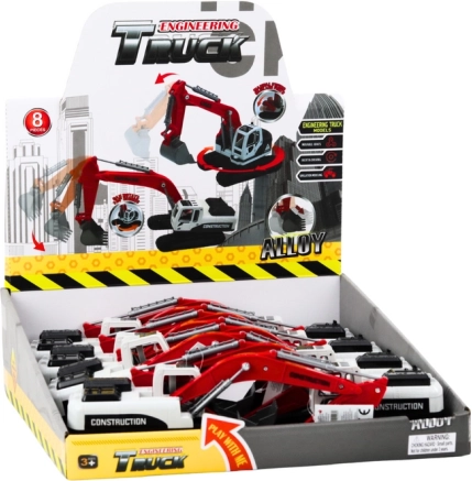 Ez a fém lánctalpas kotrógép piros-fehér színben tökéletes játék minden kis építő számára. Az állítható kar és a 360 fokban forgó kabin miatt a játék nagyon interaktív és valósághű.