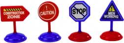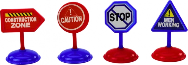 A csomag 4 oktató közlekedési táblát tartalmaz, amelyek az építési területet szimulálják és közlekedésbiztonságot tanítanak.