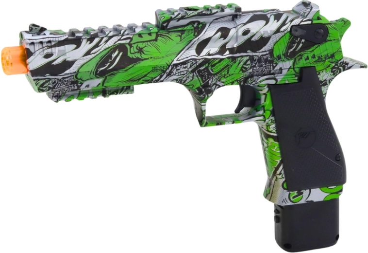 A pisztoly dinamikus színvilággal rendelkezik – intenzív zöld színe energiát és vonzerőt kölcsönöz neki. Ezen felül ezüstszínű elemek díszítik, amelyek futurisztikus, modern megjelenést biztosítanak. A teljes dizájnt graffiti díszíti, városi karaktert és egyedi stílust adva, amely felkelti a figyelmet és megkülönbözteti más játékoktól.