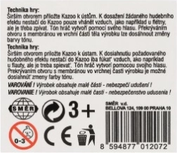A kazoo már egyszerű dúdolásra is megszólal. Ideális a gyors szórakozáshoz és a gyerekek első zenei próbálkozásaihoz.