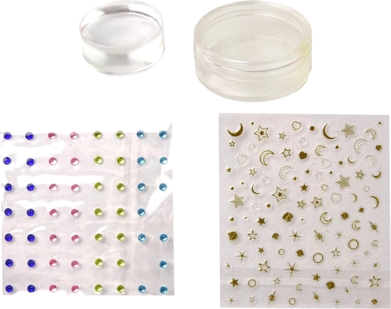 A gazdag felszereltség fejleszti a finommotorikát, a kreativitást és az egyéni stílust. A bélyegzőlemeznek, sablonoknak, matricáknak és strasszoknak köszönhetően egyedi dizájnok születnek pillanatok alatt – könnyedén és rendetlenség nélkül.