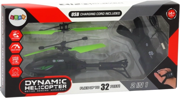 Ez a fekete–zöld RC helikopter lenyűgöző repülési élményt nyújt a gyerekeknek. A indukciós gesztusvezérlésnek köszönhetően a kézmozdulatokra reagál, finoman emelkedik és stabil repülést tart, ami ideális kezdők számára. Automatikus indítás 3 másodperccel a bekapcsolás után, így a legkisebbeknek is könnyű a start.