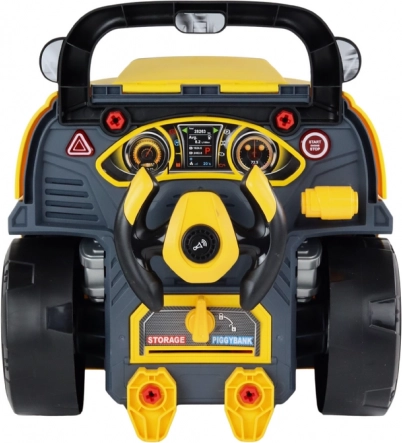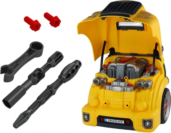 A nyitható motorháztető és a lecsavarozható kerekek lehetővé teszik, hogy a gyerekek belessenek a jármű belsejébe, és az mellékelt szerszámokkal gyakorolják az összeszerelést és szétszerelést.